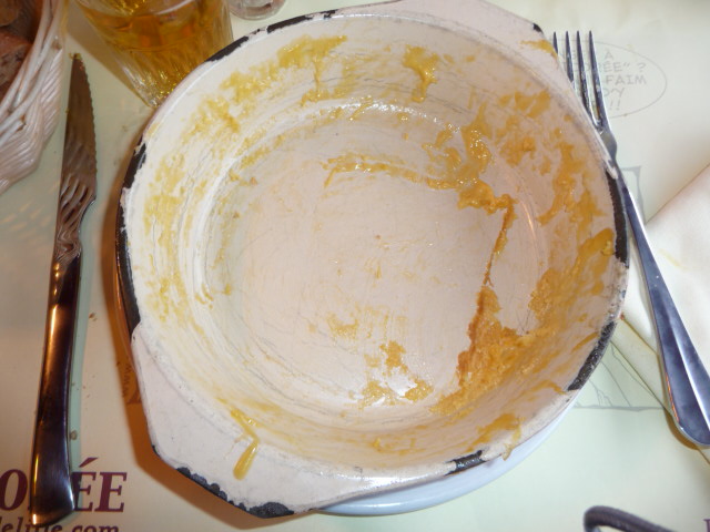 Nos voisins ont été moins patients. À un moment, l’un d’entre eux s’est retourné pour chercher une serveuse du regard et lui lâcher: « ça fait une heure qu’on attend ! ». Le jeune serveur qui s’occupait de prendre les commandes ne savait plus comment s’y prendre. En plus du retard des plats, il n’avait pas compris que je voulais un gratin dauphinois et il a oublié ma ratatouille. Mon mec n’a pas aimé sa côte de bœuf (à 20€ quand même) « parce qu’elle était trop grillé » et notre jeune serveur préféré a répondu un malin : « c’est l’effet du grill, m’sieur ». Par-fait.