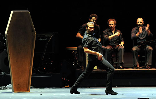 Coplas Mundanas est un récital classique, composé du chant et de la guitare, mais très moderne. Il est tellement loin des stéréotypes accordés au flamenco que le Maire du 6eme criait a la fin du spectacle: «Mais on s’attendait a un peu de danse flamenca, allez, dansez s’il vous plait, allez, olé, olé…»