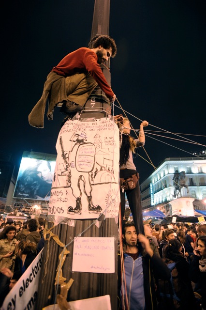 Les ‘acampados’, eux, persistent. Prochaine étape: propager les Assemblees dans les quartiers de la capitale, essayer de discuter et de  résoudre les problèmes de voisinage… Leurs banderoles demandent «regarder moins la téle et sortir dans la rue pour s’entreaider»,  selon Café Babel.