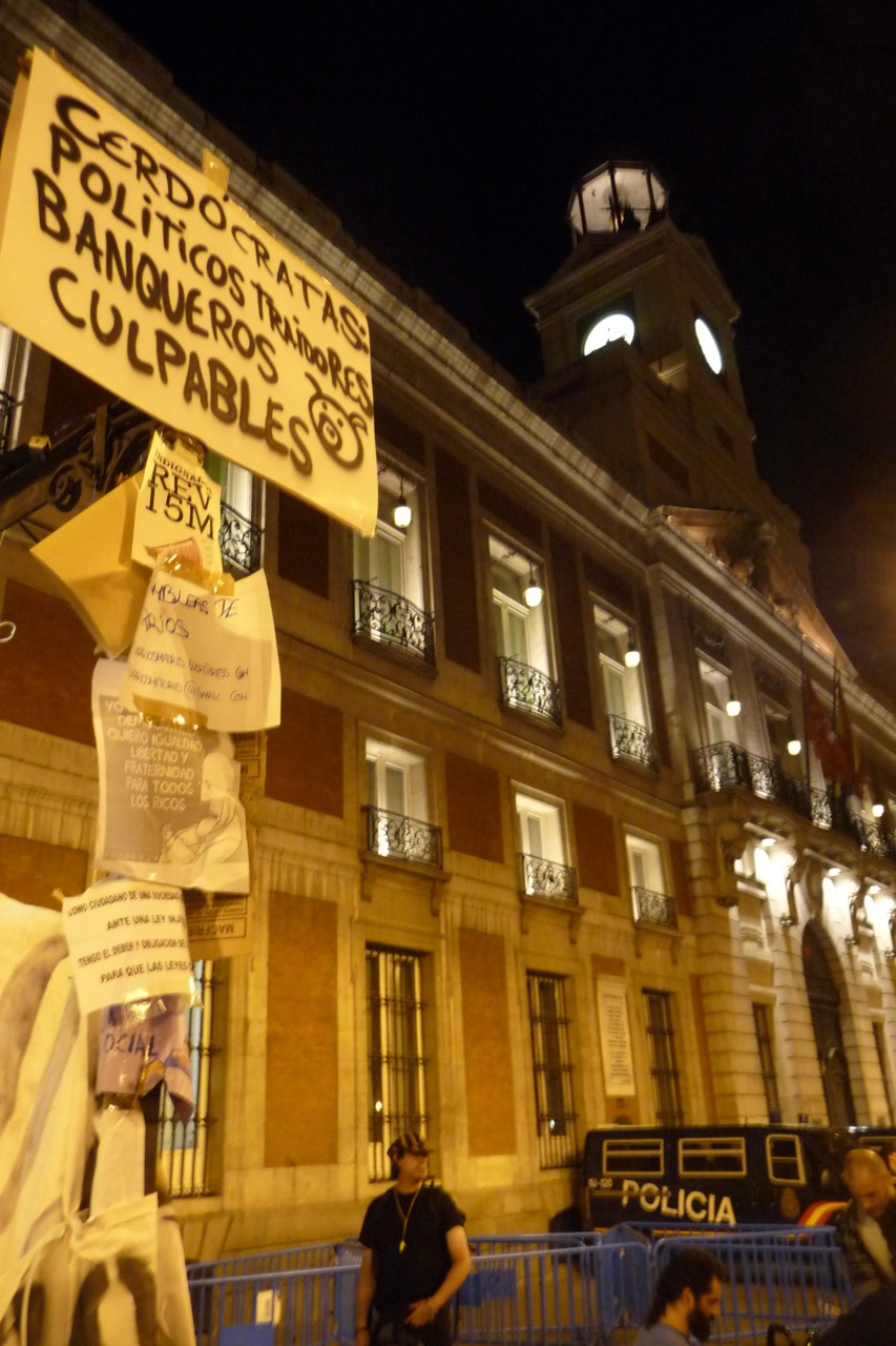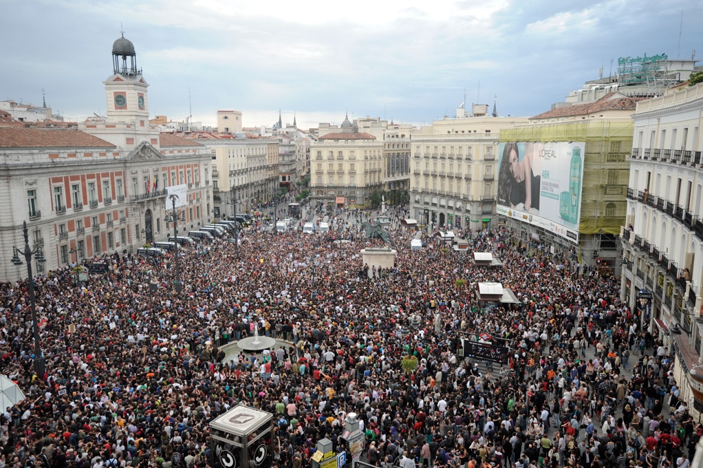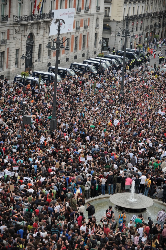 Mardi 17/05/2011 à 20 heures. Les indignés s’indignent encore plus. La Puerta del Sol est pleine à craquer. La police libère vingt personnes interpellées la veille, accusées des divers delits.