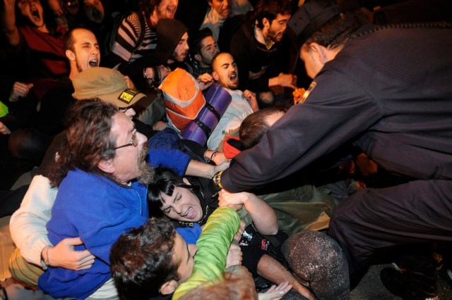 Cette nuit la police a dégagé les quelques 150 personnes qui campaient. Des moments tendus. Voici un des commentaires laissé à ce sujet par un Cruasán/a. (Merci, d’ailleurs)