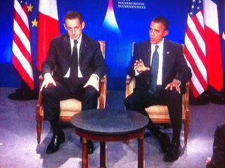 La guinda era ver lo amigos que son Sarkozy y Obama. Coleguitas. Intercambio de bromas sobre la nueva hija de Nicolas: «Barack, cada día te pareces mas a Bill Cosby, eres un cachondo». En fin. Eso, Sarkozy como mejor amigo del amigo americano.