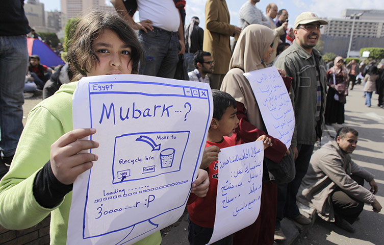 ES: Mi favorita de la galería de fotos de pancartas de manifestantes en El Cairo que ha publicado The Guardian (descubierto gracias a la periodista Esther Addley. También hay una manifestación virtual en Facebook. Un trocito de Historia.