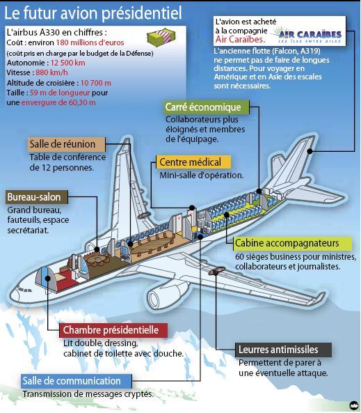 Que conste que el Airbus que ha comprado Sarkozy con la ingente cantidad de pasta que pagamos al fisco francés es de segunda mano. Un Airbus A330 vendido por Air Caraïbes por 80 millones.